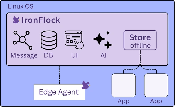 - The Appliance goes online briefly to sync your app from the IronFlock online App Store using a Store Access Key, then operates fully offline
